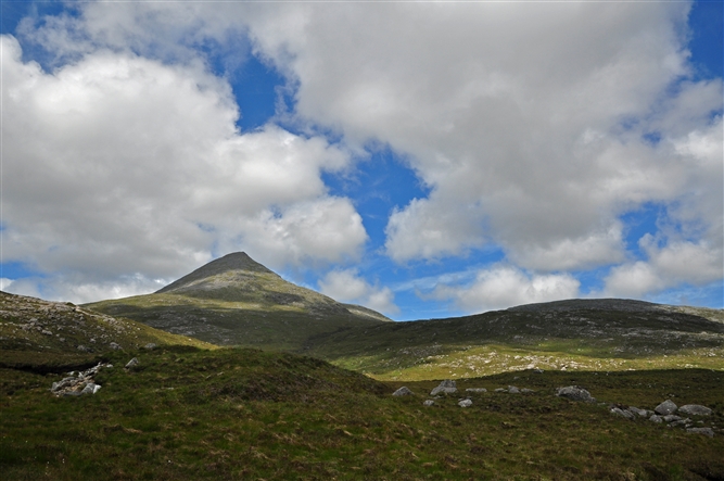 Vlak na Tarbert begint de steile klim omhoog. Percentages van naar schatting tussen de 15 en 18 %.