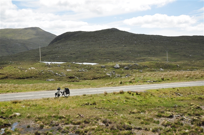 Dan volgt nog zo’n 50 kilometer naar Stornoway. Veel heuvelachtiger dan ik verwacht had. Met de zware tegenwind heb ik het gevoel dat elke klim me weer hoger brengt. Ik voel me op een gegeven moment zo gedesoriënteerd, dat ik echt op de kaart ga uitzoeken hoe hoog ik wel niet ben. Maar dat valt tegen. Veel hoger dan 100 tot 150 meter kom ik niet. Dit is zwaarder dan de Alpen.