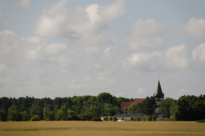 Graan en bos, maar vooral veel kerken. Soms in een dorpje of een gehucht. Maar ook vaak in de leegte. Er schijnen er zo´n 100 te staan op Gotland.