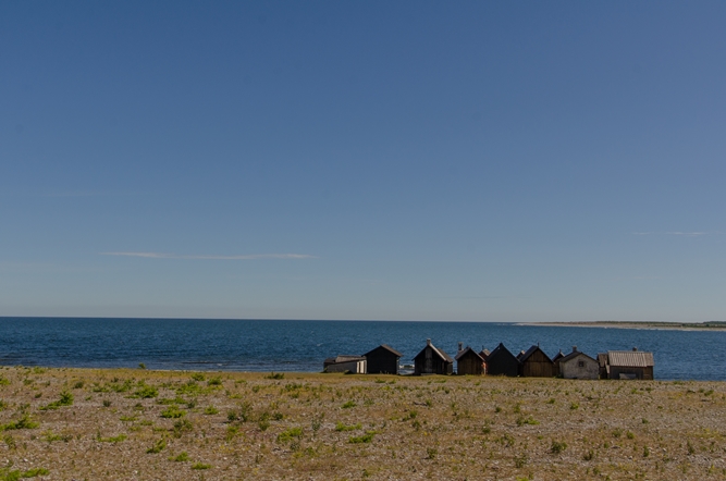 Half 7 op weg. Vrij snel de bakker (de enige winkel op Fårö). Op de kaart staan wel een aantal weggetjes naar de noordkust, maar geen verbindingen. Ik schiet een bewoner aan en die zegt dat er wel meer wegen zijn, maar dat ik een beetje mijn eigen weg moet zoeken. Het wordt dus een kwestie van proberen. Maar hij wijst ook op een landtong die erg mooi is.