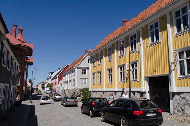 Veel houten huizen in het centrum.