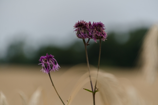 De weg is bochtig, op en af en beukenbos. In weken geen beukenboom gezien. Als het ophoud eindeloos golvende graanvelden.