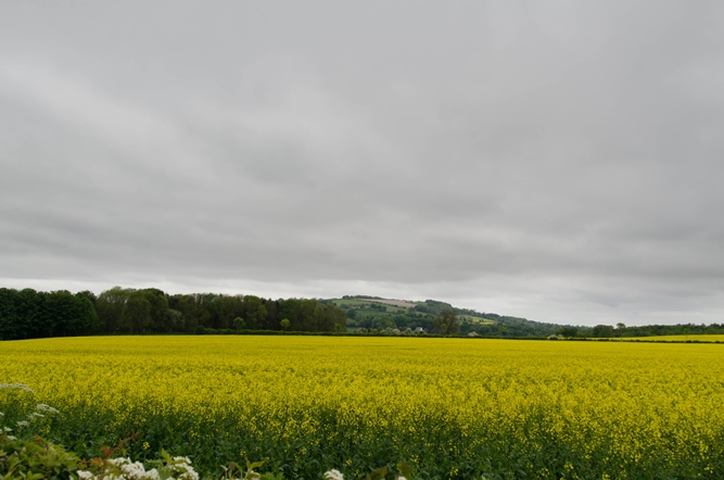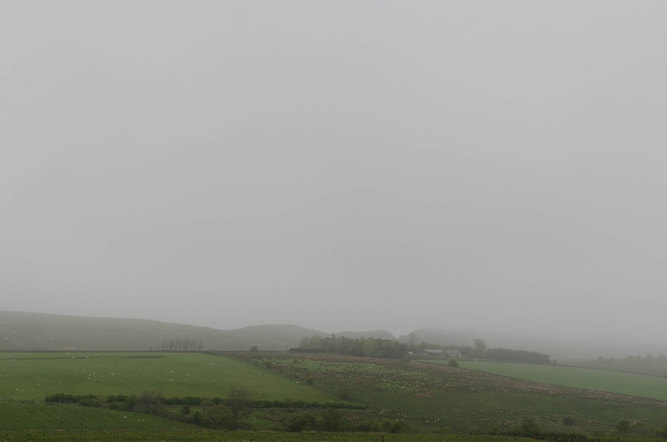 Het zou mooi weer worden vandaag, maar als ik de camping afrijd voel ik spetters. De camping ligt in een dalletje en er een heel vuil klimmetje om weer boven te komen.