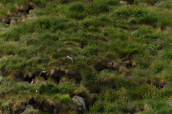 Die punt in zee. Daar broeden 80.000 papagaaiduikers. Voedsel voor zo'n twintig zeearenden.