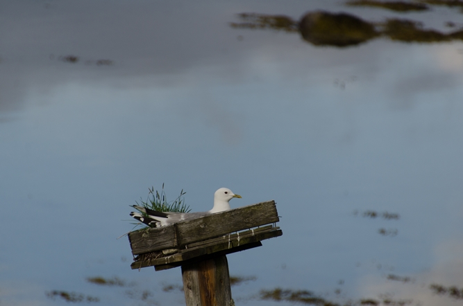 Dit soort bakjes voor broedende meeuwen is hier langs de kust standaard.