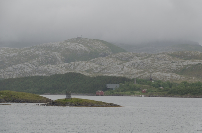 Als ik om half negen in Rørvik aan land ga, is het min of meer droog.Ik fiets naar de camping.