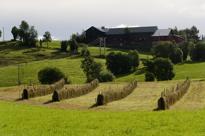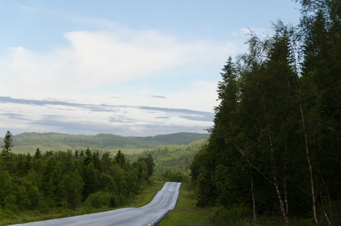 In Leksvik is de winkel nog dicht. Dan maar ontbijten met wat ik heb.Het gaat nu verder vlak op zijn Noors lang de kust. Er vallen wat druppels.