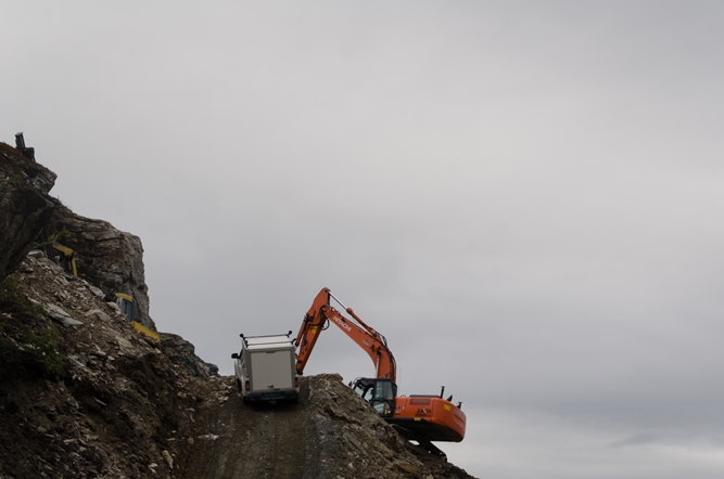 Een tunnel, de oude weg eromheen. Gaat goed tot ik na tunnel over de vangrail moet klimmen om verder te kunnen.Het verkeer wordt nu echt minder. Nadat de weg in westelijke richting draait, krijg ik de wind in de rug. Het is ook nagenoeg vlak, dus gaat het even snel.