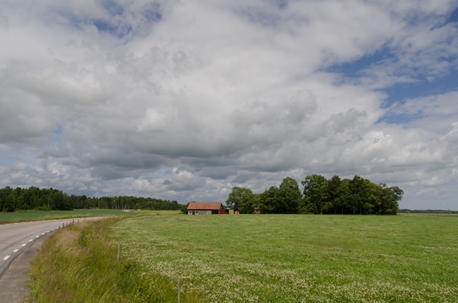 Zoals het hoort in Zweden. Bos, weide en een rode schuur.