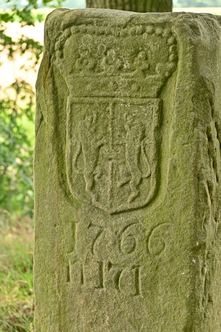 Een grenspaal uit 1766. Maar niet op De Grens. Een paar kilometer verderop een zelfde grenspaal. Maar wel op De Grens. Een voorbeeld van een veranderde grens. |